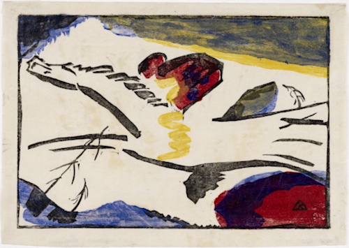 J’aime beaucoup cette gravure sur bois en couleur, le mouvement du galop parfaitement rendu. Seules quelques lignes bien placées et des taches de couleurs permettent de définir le sujet. On sent que le peintre est sur le point de passer du réalisme à l’abstraction.
